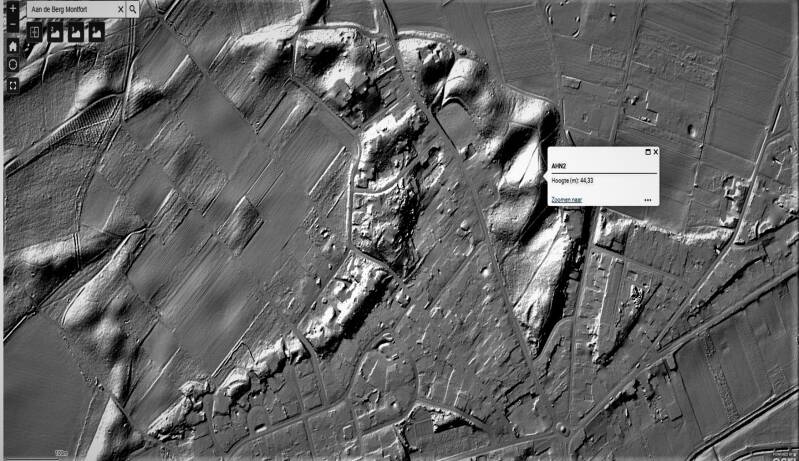 Op de topografisch kaart uit 1996 is met driehoekje RD het hoogste punt van Montfort aangegeven 44,30 m + NAP in de volksmond genoemd " 't Teurke" (het torentje)