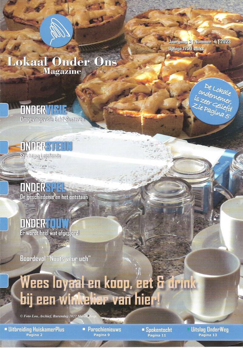 20 september 2023 , Lokaal Onder Ons jaargang 3 nummer 4 september 2023 Dit blad wordt uitgegeven in Maria-Hoop en omstreken, en verschijnt in hoge kwaliteit zes maal per jaar. Ditmaal het ontstaan van het "Aopeluchspel " in 1923. Het verhaal staat te lezen op de pagina geschiedenis vanaf 1961.